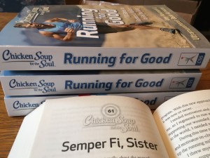 “Chicken Soup for the Soul: Running for Good” launched six weeks ago. It was a total fluke that I learned of the chance to submit my story so I was thrilled “Semper Fi, Sister” was included. The one hour Twitter virtual launch with the other authors and the publisher was like downing a triple espresso chased with Redbull.